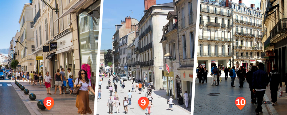 Les rues historiques situées à Cannes, Dijon et Montpellier complètent le classement