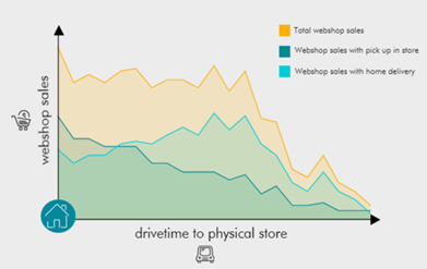 Les magasins font de plus en plus office de lieux de collecte et de retour des produits achetés. Cela renforce le chiffre d'affaires d'un détaillant. La part de marché de la zone de chalandise (surtout celle secondaire) - augmentera en conséquence. En savoir plus sur l'effet de halo.