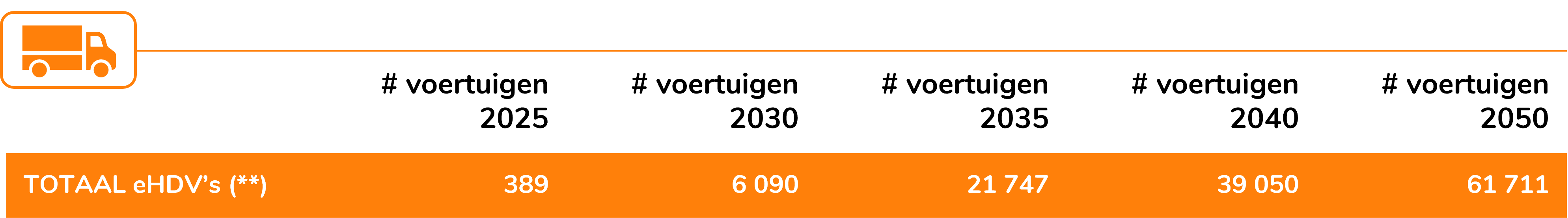 Selon les prévisions de marché de la fédération de l’industrie automobile FEBIAC, établies avant le récent assouplissement de la législation européenne sur les camions électriques, environ 22 000 camions électriques pourraient circuler en Flandre d’ici 2035. Pour atteindre cet objectif, des investissements importants seront nécessaires dans l’infrastructure de recharge, aux emplacements adéquats. À ce jour, les infrastructures de recharge dédiées aux camions sont quasiment inexistantes. Cette situation devra évoluer rapidement pour soutenir la croissance attendue.