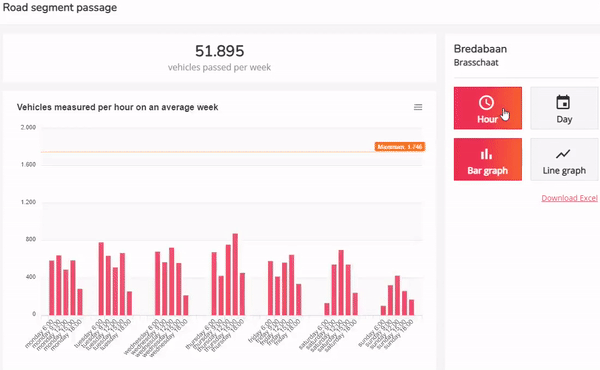 De drukte op de toegangsweg naar een potentiële nieuwe locatie bekijken? De avonddrukte rondom een wat minder presterende vestiging analyseren, om langere openingstijden te onderbouwen? Het kan allemaal direct in het RetailSonar platform! De traffic informatie is in kaart- én grafiekvorm heel eenvoudig op te vragen door op de betreffende locatie te klikken.