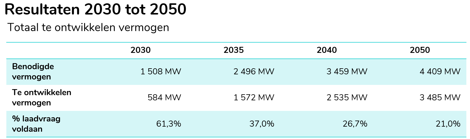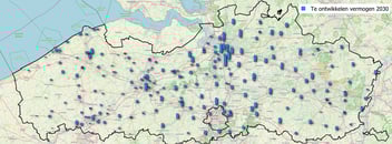 - 18 gemeenten hebben vandaag al bijna het volledige laadvermogen voor 2030 geïnstalleerd. Voor hen zal het uitbouwen van het nodige laadvermogen nog steeds nauwgezet moeten gebeuren om ook ná 2030 klaar te zijn.