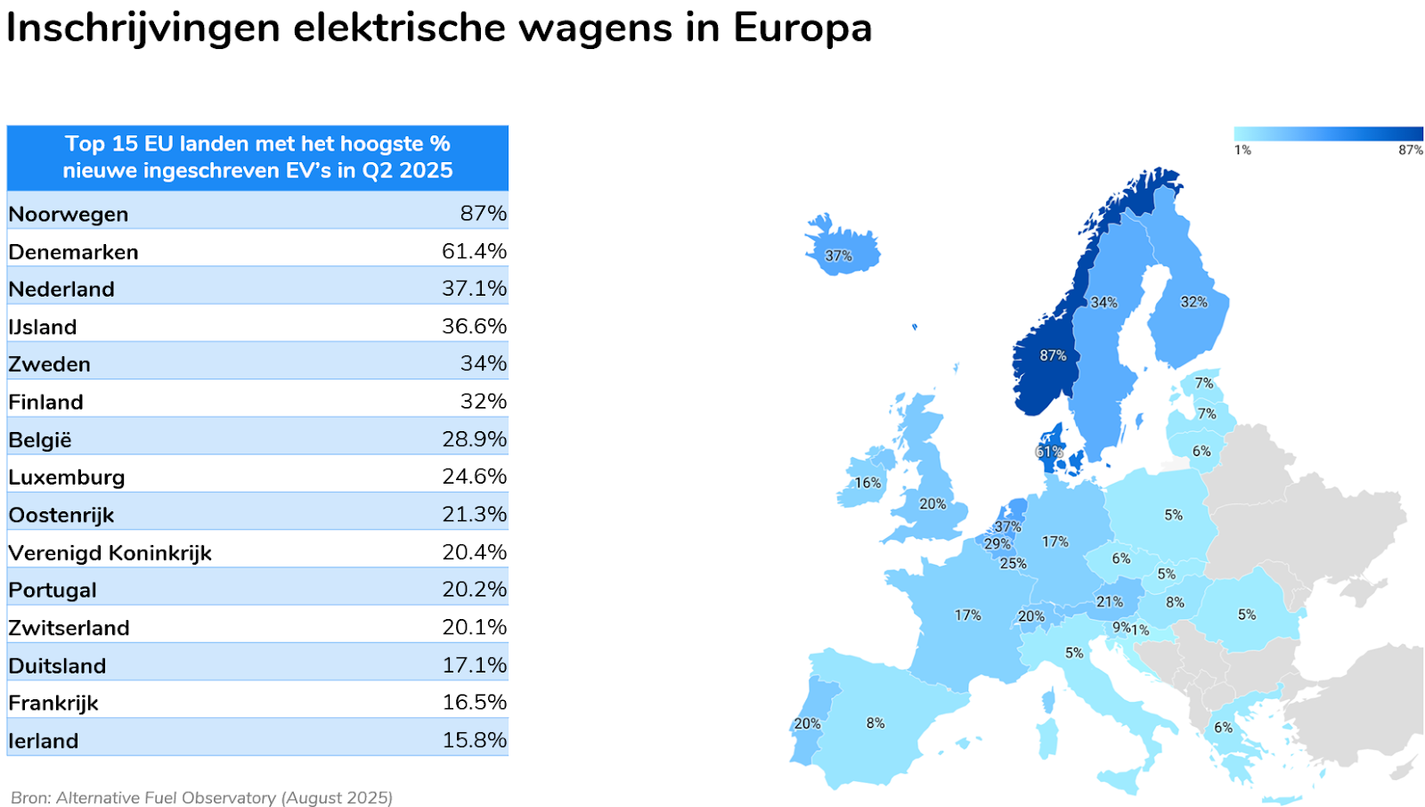 Vlaanderen in 2025 voorloper op Europese EV-penetratie