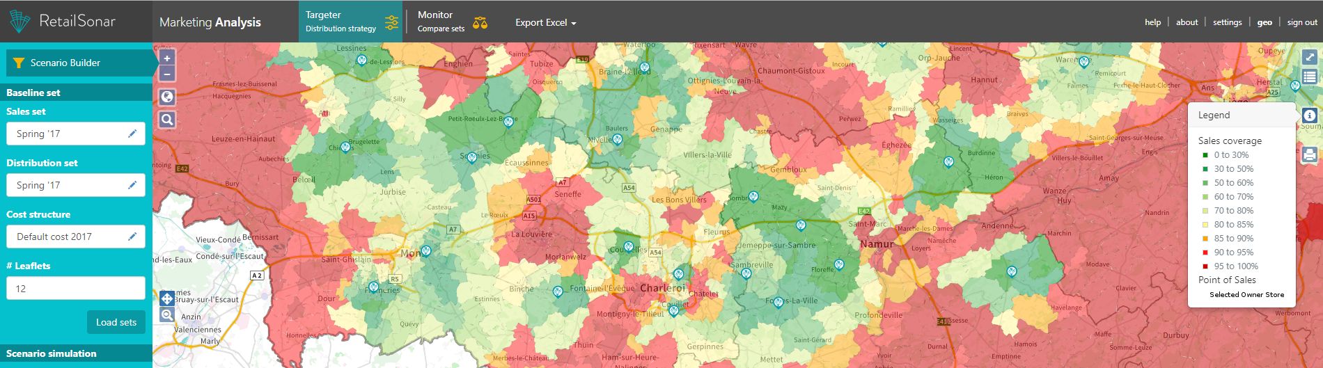 Voor sommige winkels zou een lagere sales coverage namelijk fataal kunnen zijn. Onze tool maakt het mogelijk om dankzij location balancing deze winkels te ‘sparen’ door nuances aan het optimale plan toe te voegen. Zo voorkom je dat net opstartende winkels of filialen die het sowieso al moeilijk hebben zonder steun van een nieuwe marketingcampagne vallen.