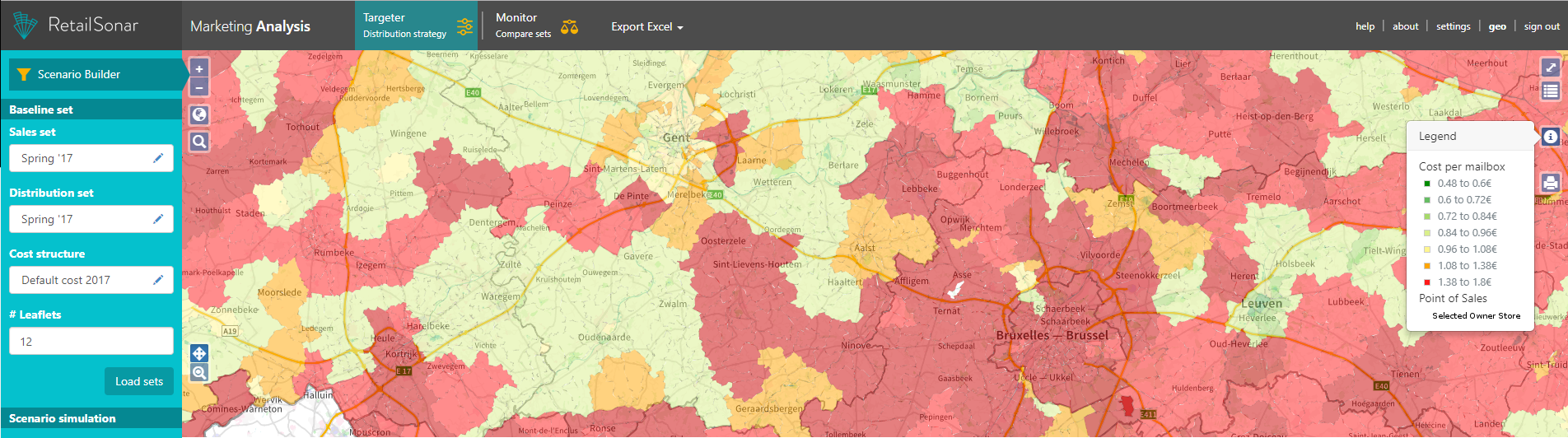 Bij RetailSonar zit dit soort optimalisatie in ons DNA. Wij steunen hiervoor volop op de beschrijvende en voorspellende kracht van data. Op basis van onze jarenlange expertise bouwden we de Campaign Targeter, een geomarketingtoepassing waarmee marketing managers het bereik van folderacties correct kunnen inschatten en waar nodig optimaliseren.